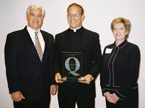 2003 | 2004 | 2005 | 2006 | 2007 | 2008 | 2009 | 2010 | 2011 | 2012 2003 Q Award Recipient Cathedral of Our Lady of the Angels Los Angeles, CA – The Alliance for Quality Construction (AQC) has awarded the Cathedral of Our Lady of the Angels the 2003 “Q” Award. This award is presented to the construction project that best meets criteria of the AQC’s mission. Their mission is dedicated to promote industry awareness of the value, quality and integrity provided by union contractors and their skilled craftsmen. The AQC is comprised of 23 construction union trade groups, councils and associations based in Southern California. The first annual “Q” Award event was held at the Wyndham Hotel in Commerce, California, on Wednesday, May 14, 2003 with an 11:30 am reception, 12:00 pm lunch, and the “Q” Award presentation. Accepting for the Cathedral of Our Lady of the Angeles, and the Catholic Archdiocese of Los Angeles, was Monsignor Kostelnik.