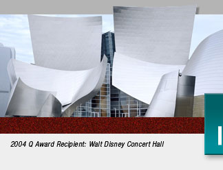 The Q Award luncheon held on Monday, June 14th, at the Walt Disney Concert Hall attracted nearly 200 government, business, and labor representatives including Los Angeles County Supervisors Zev Yaroslavsky and Michael Antonovich, former Los Angeles District Attorney Gil Garcetti, Southern California Building and Construction Trades Executive Secretary Richard Slawson, and President and CEO of the L.A. Music Center Stephen Rountree. After a superb lunch by Patina, Gil Garcetti addressed the attendees not as a district attorney, but as a current full-time photographer. During construction of the Disney Hall, the daring ironworkers clambering over the curved steel of the concert hall skeleton intrigued Garcetti. He found himself compelled to photographically document the workers' strength, grace and skill. He documented his views of the Hall’s construction process with a new book of his photos entitled Iron: Erecting the Walt Disney Concert Hall. Attendees then witnessed a photo presentation by Sean Leonard, Senior V.P. in charge of project management for the recently constructed Disney Hall. Mr. Leonard shared many stories of his dealings and visions with the Disney Hall architect Frank Gehry, and the many union tradesmen who erected this American landmark. Following Leonard’s presentation, the 2004 Q Award was presented to the County of Los Angeles’ Walt Disney Hall. Accepting the award on behalf of the people of Los Angeles County was Supervisor Zev Yaroslavsky. Mr. Yaroslavsky spoke about the many hurdles government, business, and labor had to overcome to create the Gehry masterpiece. He thanked the many people responsible for being steadfast in completing the arduous task of constructing a beautiful structure that could last hundreds of years. “We are very proud of selecting the Disney Hall as this year’s Q Award recipient,” said Pam Ackrich, AQC’s Chairman. “After touring this fabulous facility, there is no question that the Disney Hall stands alone as a project that could not have been completed were it not for the skilled labor, expert management, government cooperation, and of course the vision of Frank Gehry,” says Ackrich.