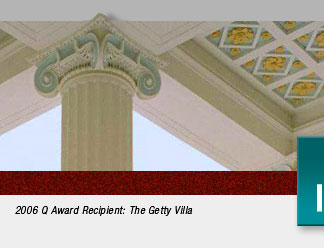 The Q Award presentation was held on Wednesday, June 14th, at the Getty Villa’s 250-seat theatre, and followed by an elegant luncheon held on the terrace overlooking the museum’s spectacular entrance. The Q Award attracted nearly 250 government, business, and labor representatives including Los Angeles City Mayor representative Douglas E. Nelson, Morley Construction Company’s (general contractor) Tod Howard, and Southern California Building and Construction Trades Council Executive Secretary Richard Slawson. Project manager Bill Boehle, project superintendent Ed Doyle, and senior project manager Todd Howard provided a vivid pictorial overview of the construction and renovation of the Getty Villa. Messer’s. Boehle, Doyle, and Howard shared many stories relating to the creativity, professionalism, and craftsmanship which occurred during the incredible renovation while being able to deliver the vision of the Villa’s project team. Following the pictorial presentations, Pam Ackrich, the AQC’s chairman, presented the 2006 Q Award to the Head of the Villa Project Team, Corbin Smith. On behalf of the Getty Villa, Mr. Smith graciously thanked the AQC, Morley Construction, the many sub-contractors and trades groups, and the Getty Villa. He also spoke of the incredible cooperation among the project team, contractors, and labor to create this world-class cultural landmark. “When touring the Getty Villa, you get a sense of the incredible craftsmanship and planning needed to construct such a project,” said Pam Ackrich, AQC’s Chair. “The Getty Villa is certainly one of the most beautiful sites in the West Coast, and maintains the richness of quality, design, craftsmanship and ingenuity. The Getty Villa deserved the 2006 Q Award,” said Ackrich. Photo Gallery