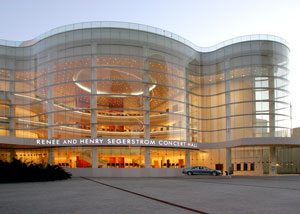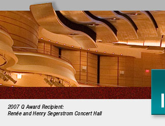 Richard Slawson, LA/OC Building & Construction Trades Council Executive Secretary, addressed the crowd regarding the importance of skilled labor working together on a massive, and elegant project such as the Segerstrom Hall. Donn Hall, Chairman, Planning Commission for the City of Costa Mesa, reminisced of his days as a teen when most of Orange County was filled with farm land. He then provided historical insight into the development of the Orange County Performing Arts Center, and how Renée and Henry Segerstrom’s support allowed the building and completion of the Center. Mr. Hall was extremely proud of the construction of the Concert Hall, and the cooperative achievement attained by government, developers, and labor. Robert Medinger of Fluor Enterprises, Inc., the general contractor for Renée and Henry Segerstrom Concert Hall, provided a visual presentation of the construction process from bare land to the finished product. His insights included the fact that at any given time; over 400 union craftsmen and women were on site working together to complete the award-winning Segerstrom Hall. Michael Gordon, Chairman of the Board for the Orange County Performing Arts Center, then accepted the 2007 Q Award from Ms. Ackrich, for the remarkable development of the Segerstrom Hall. On behalf of the OC Performing Arts Center, Mr. Gordon thanked the AQC members for the award, and acknowledged the many union trades groups for their contribution to the magnificent structure. The award recognizes the Center for its constructed 2,000-seat Renée and Henry Segerstrom Concert Hall designed by Cesar Pelli. The new concert venue is part of The Center’s expanded facilities, which also includes the 500-seat multi-functional Samueli Theater and an education theater and lab. The Center’s new structure, along with South Coast Repertory theater and the site of a future visual arts building, create Segerstrom Center for the Arts, which is united to the Orange County Performing Arts Center’s original building by a 46,000-square-foot outdoor community plaza designed by Peter Walker & Partners. The new addition also features Leatherby's Cafe Rouge, a public restaurant, and a private donor room. The AQC’s "Q Award" is given annually for outstanding contributions for quality construction within the building industry of Southern California. The winner is nominated and selected by the Alliance's membership from quality union construction projects completed in the previous year. The Alliance's member union trades and contractors successfully constructed the Cesar Pelli designed concert hall, which features a graceful curved glass facade, multi-tiered atrium lobby, Portuguese limestone exterior, and broad exterior stone stairways. Inside the concert hall are graceful balconies constructed of compound plaster, an orchestra platform and walls finished in light Canadian maple, a soaring façade for the pipe organ finished in silverleaf, three massive acoustical canopies above the performance platform also finished in silver leaf and four acoustical chambers surrounding the hall painted in sky blue. The canopies and chambers are among the elements designed by Artec Consultants, Inc. that allow the Renée and Henry Segerstrom Concert Hall to be adjusted to meet the precise acoustical specifications of musicians, conductors and music directors. Members’ work can also be seen in the circular grand staircase featuring glass, silver metal, and Spanish granite. Additional features include the foyer ceiling designed by Francesca Bettridge and manufactured by Design Plan. It features Swarovski crystals with LED lighting and a chandelier comprised of 300 individually suspended pendants tipped with faceted Baccarat crystal globes. Photo Gallery