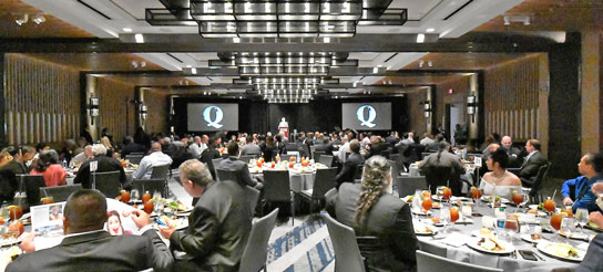 Los Angeles, CA – A full crowd of construction industry professionals attended this year’s Q Award presentation to Korean Air for its development of the Wilshire Grand Center. The Alliance for Quality Construction’s selection has redefined Los Angeles’s skyline. The Wilshire Grand Center’s tower pinnacle is hard to miss with a glass covered sail and a 175-foot steel spire to claim it as LA’s newest and tallest skyscraper at 1,100 feet.